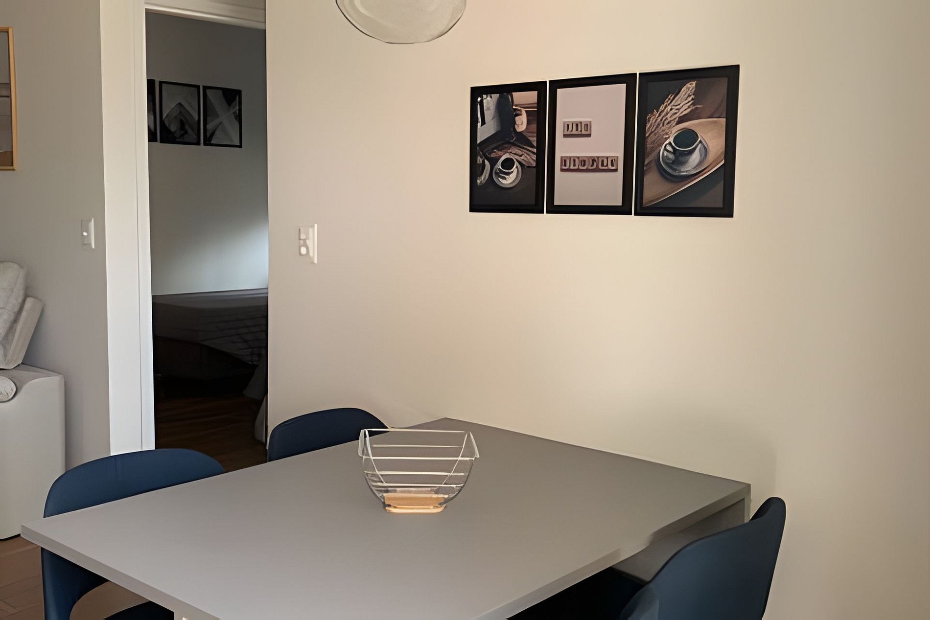The apartment is pet-friendly! We provide accessories for your furry friend, including a pet bed, food bowl, and water bowl.