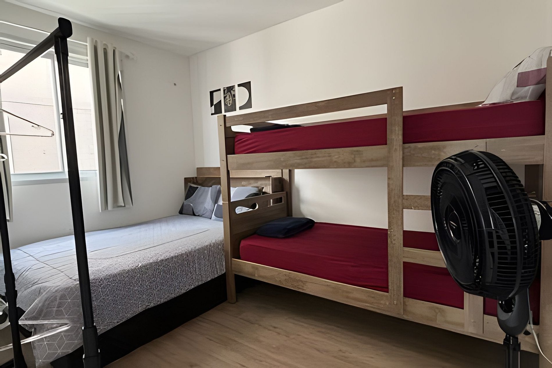 New condominium! This apartment features two bedrooms with two double beds and one bunk bed, plus a retractable sofa in the living room, comfortably accommodating up to 7 guests. It includes a spacious bathroom, Britânia fans in all rooms, and a fully equipped kitchen with dishes, pans, and cutlery.