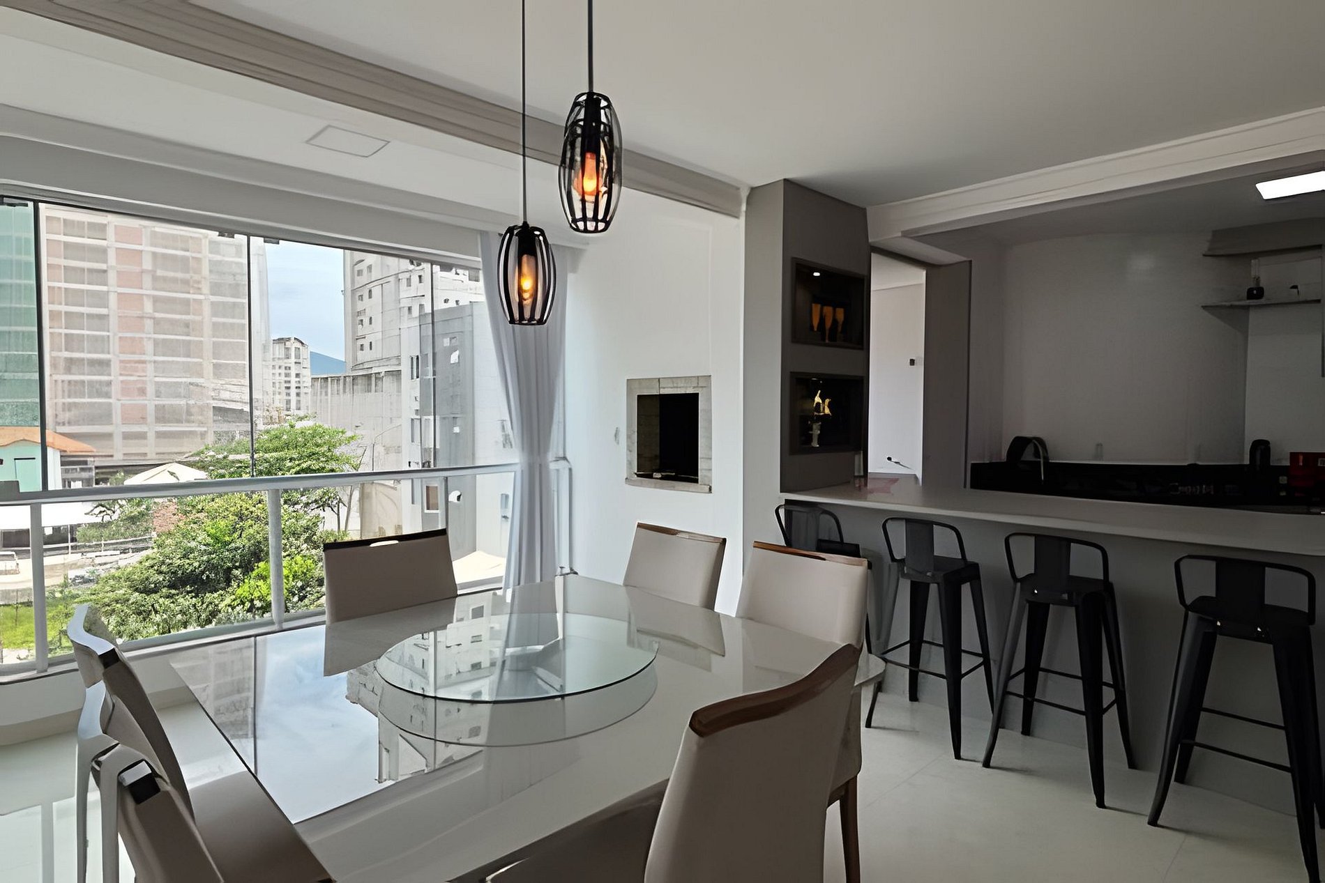 Integrated Living Area - A spacious and inviting environment that combines the living and dining rooms with a charcoal barbecue — perfect for relaxing moments with friends and family.