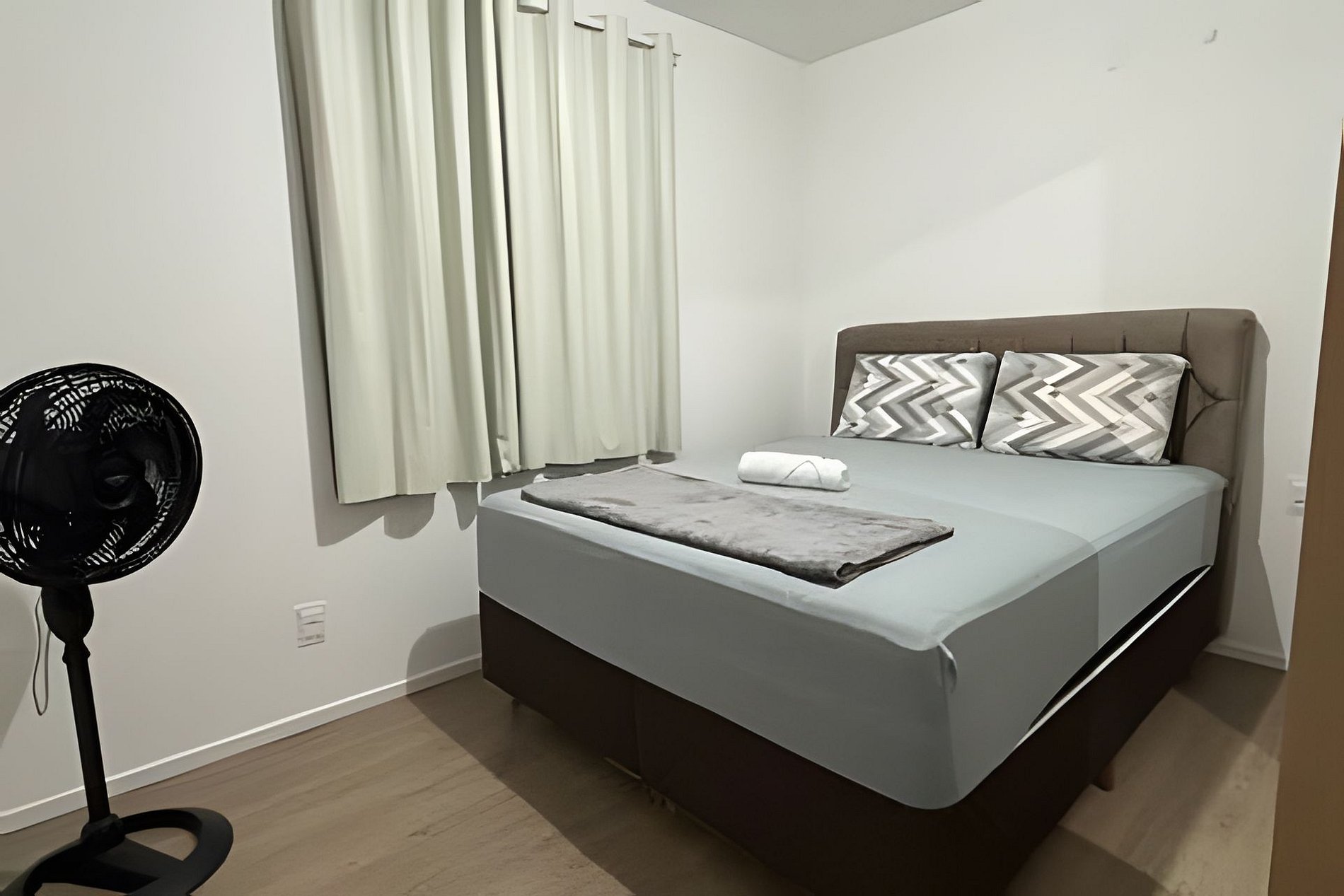 ¡Condominio nuevo! Este apartamento cuenta con dos dormitorios con dos camas dobles y una litera, además de un sofá retráctil en la sala de estar, con capacidad para hasta 7 personas. Incluye un baño amplio, ventiladores Britânia en todos los ambientes y cocina completamente equipada con vajilla, ollas y cubiertos.