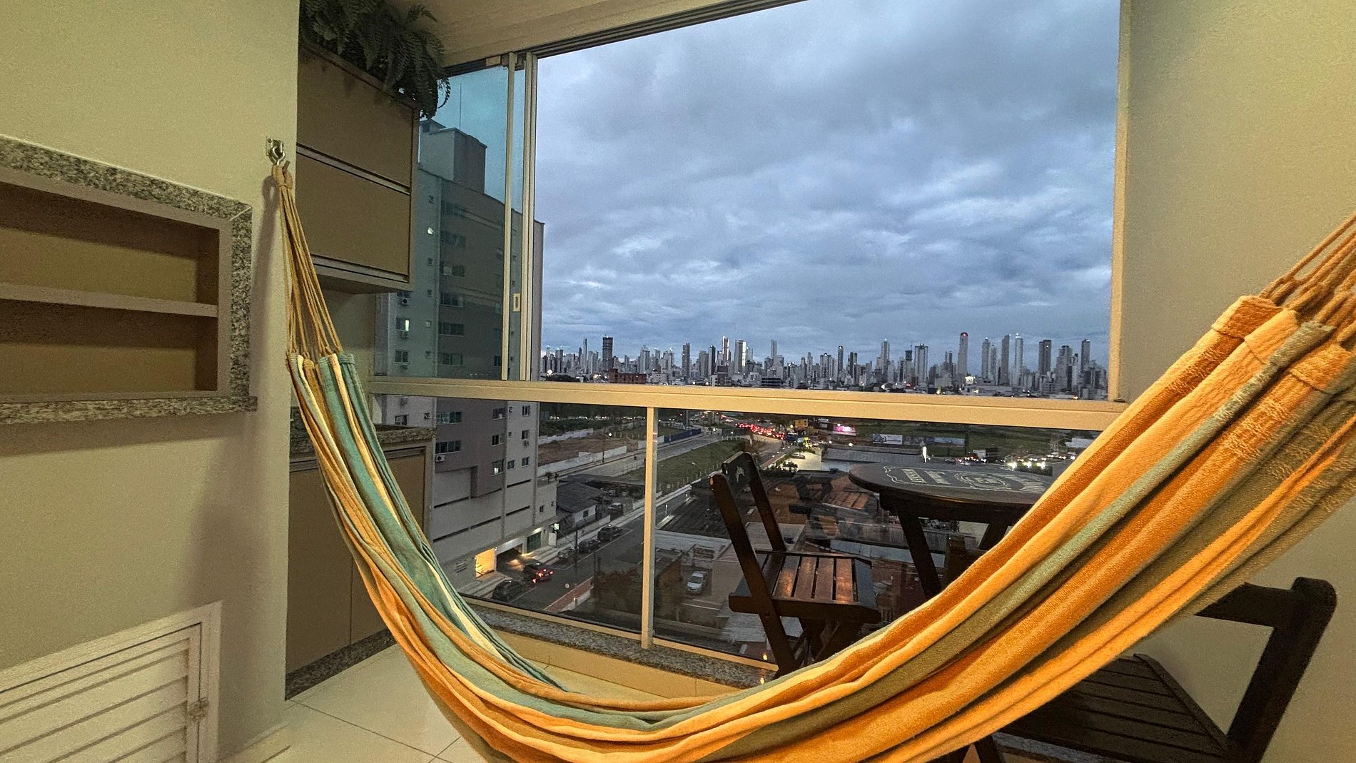 Com 1 suíte + 1 dormitório e ar-condicionado em todos os cômodos, este espaço oferece conforto e praticidade. Está apenas a 5 minutos de carro da Praia Central de Balneário, próximo ao Balneário Shopping, rodoviária, Mc Donald’s, Av. do Estado e com acesso rápido à BR-101.