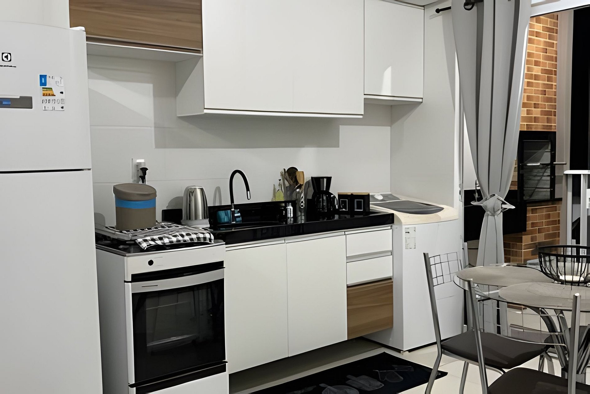 Condomínio novo, apartamento com dois dormitórios contendo duas camas de casal e uma beliche, sofá retrátil na sala, podendo acomodar até 7 pessoas, banheiro amplo, ventilador britânia em todos os cômodos, cozinha completa, louças, panelas e talheres, sacada com churrasqueira a carvão, estacionamento privativo incluso no local (sem custo adicional ao valor da diária no anúncio). O condomínio conta com portaria em horário comercial, câmeras de segurança, iluminação, piscina adulto e infantil para os hóspedes usufruírem, playground para crianças, áreas de convivência, quiosque e espaço pet. Itens básicos são deixados para o uso dos hóspedes: Sal; Azeite; Café; Açúcar; Papel Higiênico; Toalha de rosto; Toalhas de banho.